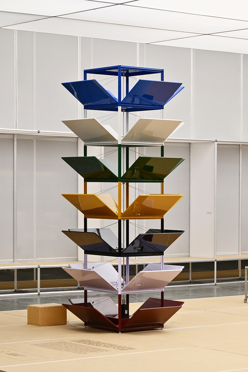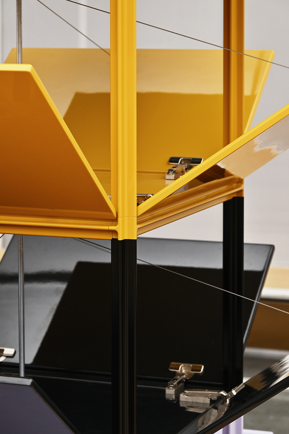 ① The exhibition uses a workshop trolley built with X System to distribute the manuals elsewhere inside the workshop.