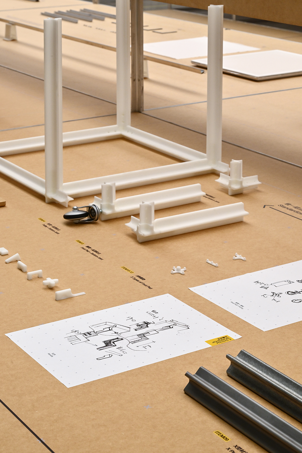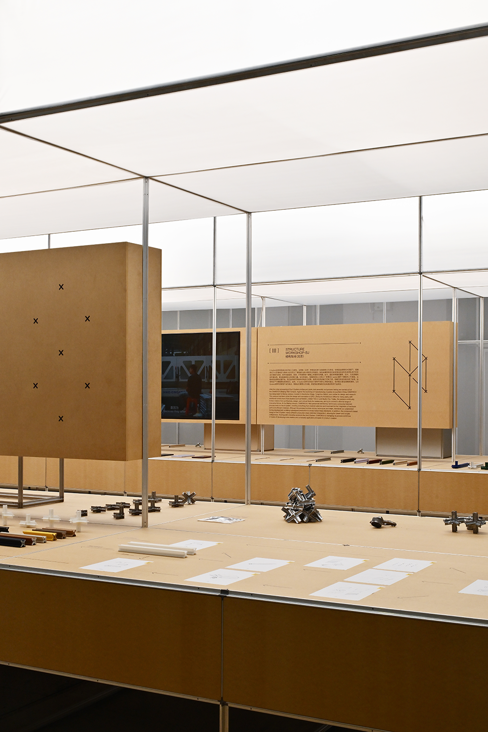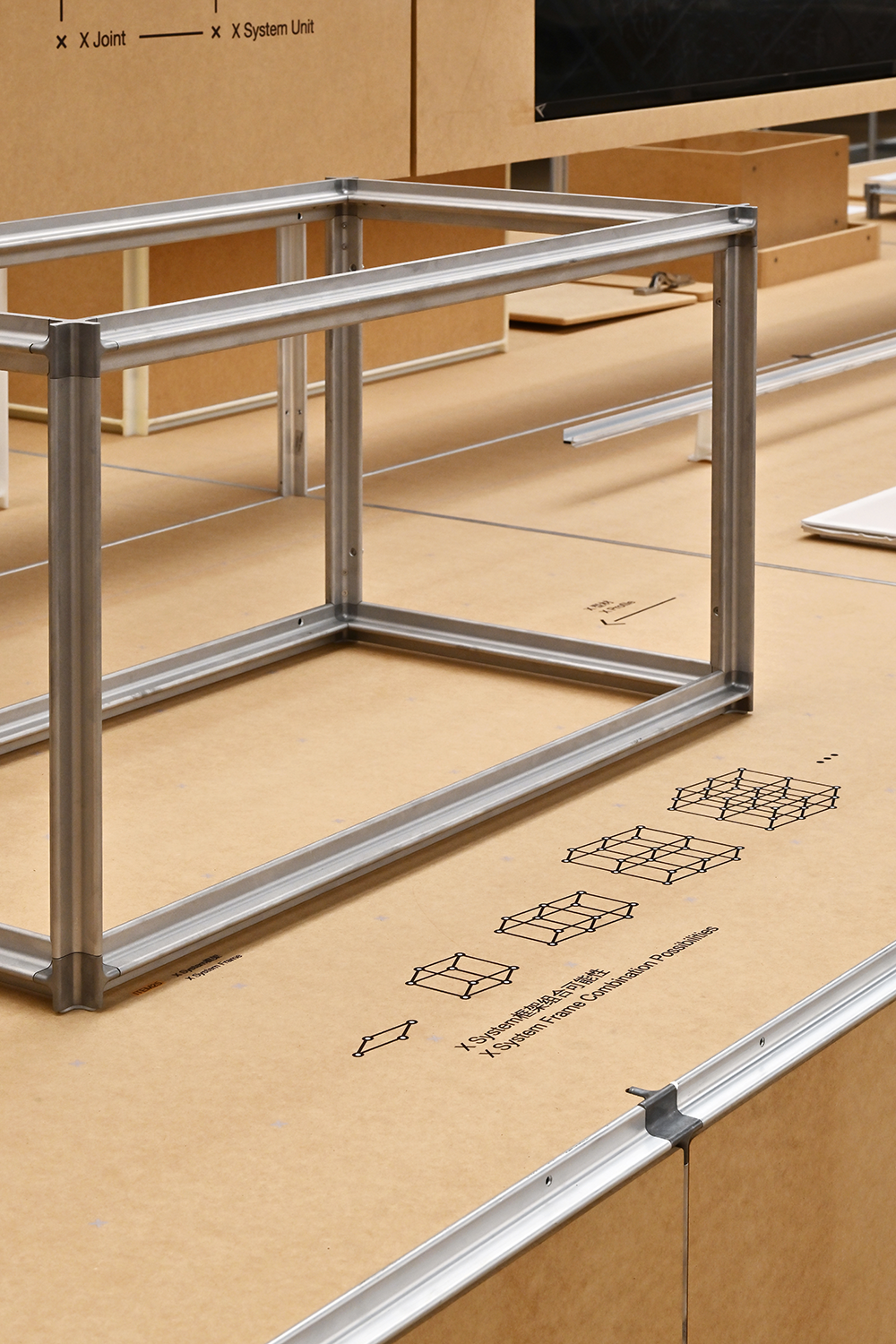 Outside the four core workshops, there is an "Assembly Workshop" for live demonstrations of basic unit assembly. Visitors can participate, bringing people closer to the product. The other side of the assembly station explores X System’s sustainable design—through recycling and processing, materials and components may be reused in furniture and exhibitions.