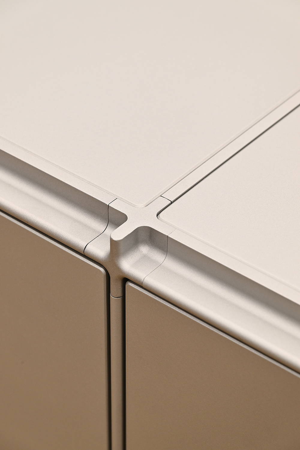 The basic modules—composed of aluminum profiles, joints, and panels—are highly adaptable and combinable with various materials and accessories to create different kinds of furniture. In manufacturing terms, the limited assortment of components, quantifiable workmanship standards, and simplified processes reduce the risk of errors caused by complex procedures or manual work, enabling more precise compatibility between design and production.
