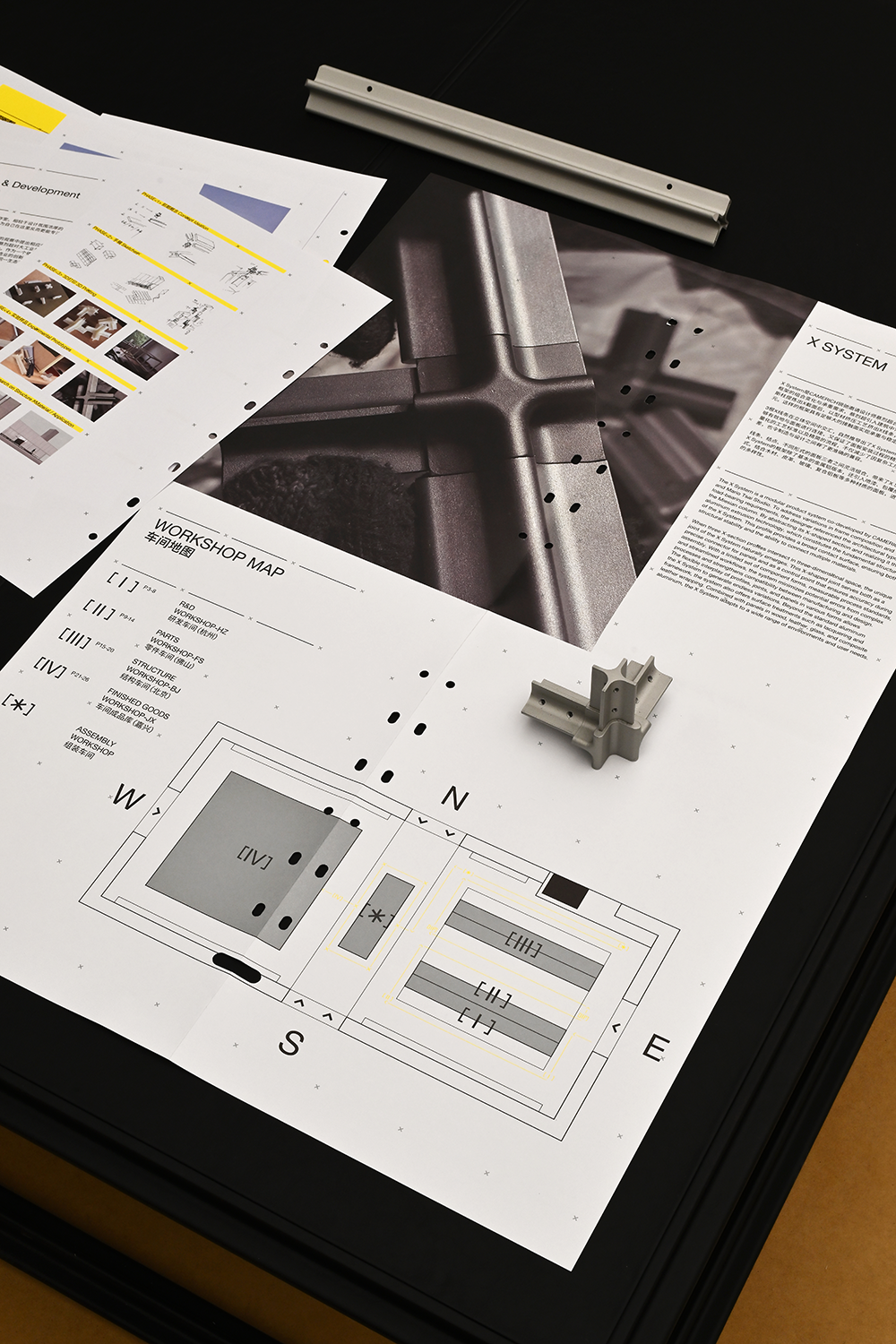 In the Hangzhou “R&D Workshop,” visitors see how the X System concept took shape. Inspired by the "Miesian column" commonly in architecture, Mario designed the X-profile. Three intersecting X-profiles in 3D space led naturally to the form of the connecting node. After solidifying the design, Mario’s team began researching structure, materials, and application models.
