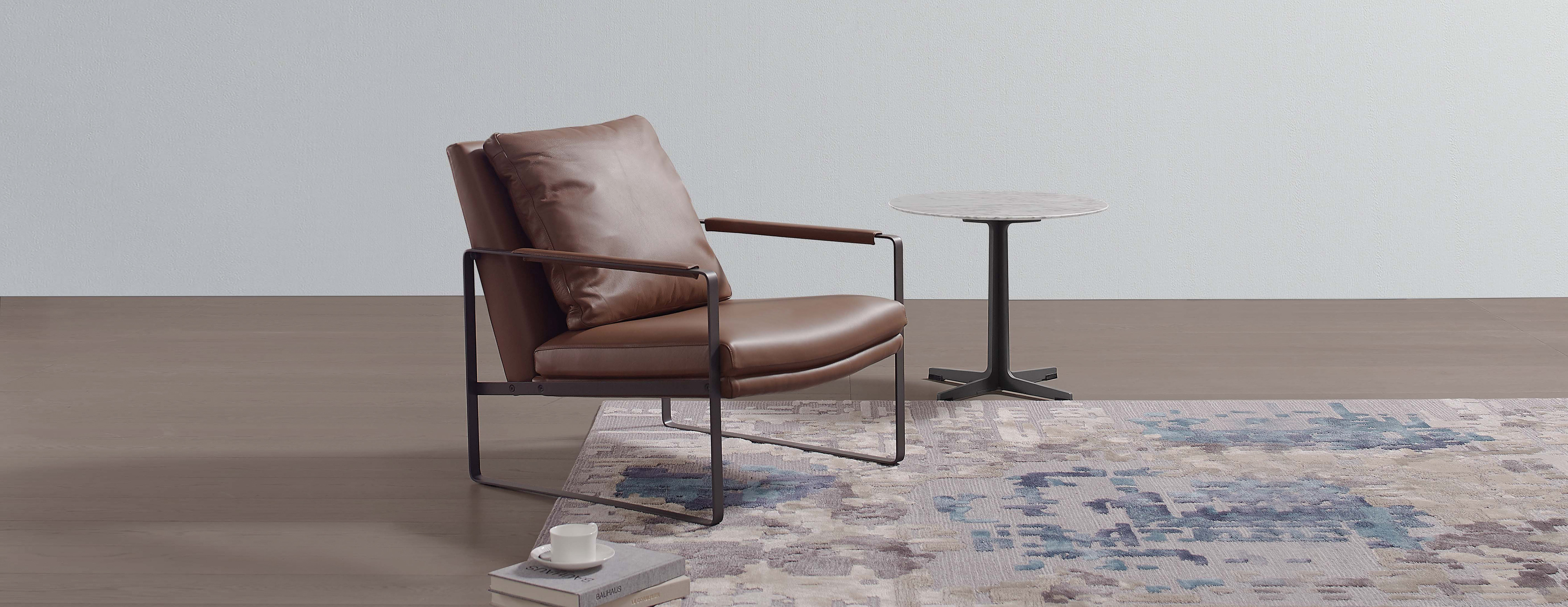 Oversized cushion contrasts drastically with exquisite metal framework, creating clean, candid yet rational beauty.