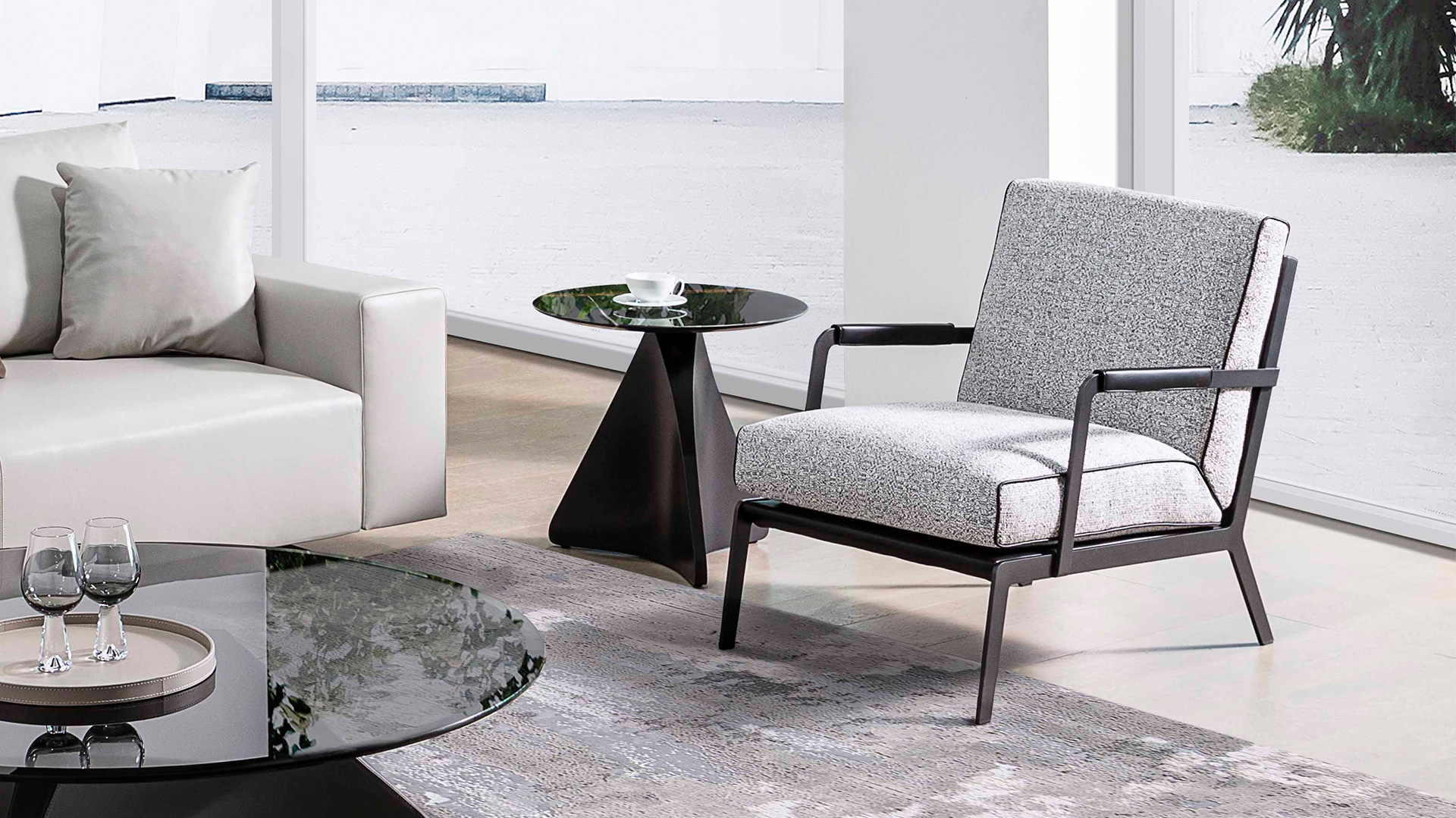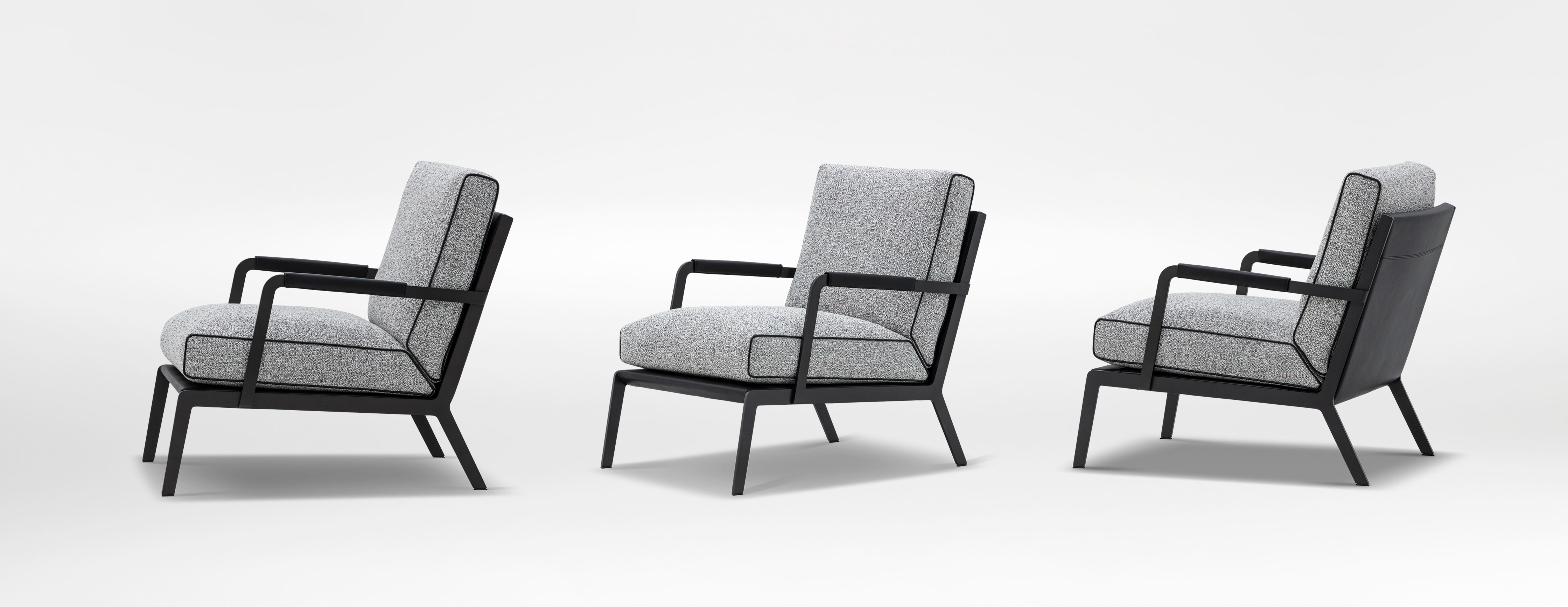 轮廓清晰,皮质滚边勾勒出流畅的侧面线条,于目所能及的舒适感中加入极简的笔触;冷质金属扶手与暖质软包搭配的相得益彰,硬朗的外壳下藏着柔软的内”芯”和恰到好处的关怀。