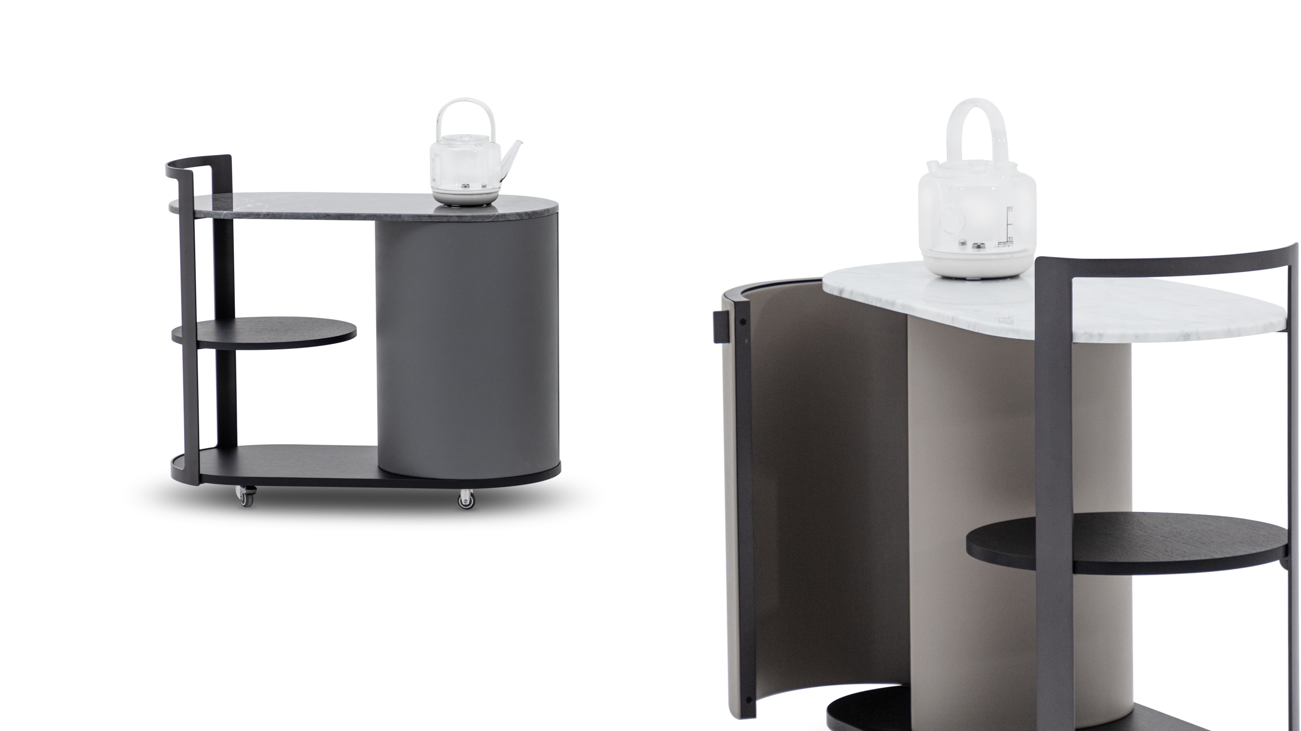 星月茶车外形优雅圆融,隐藏式储水和走线设计令室内整洁美观。