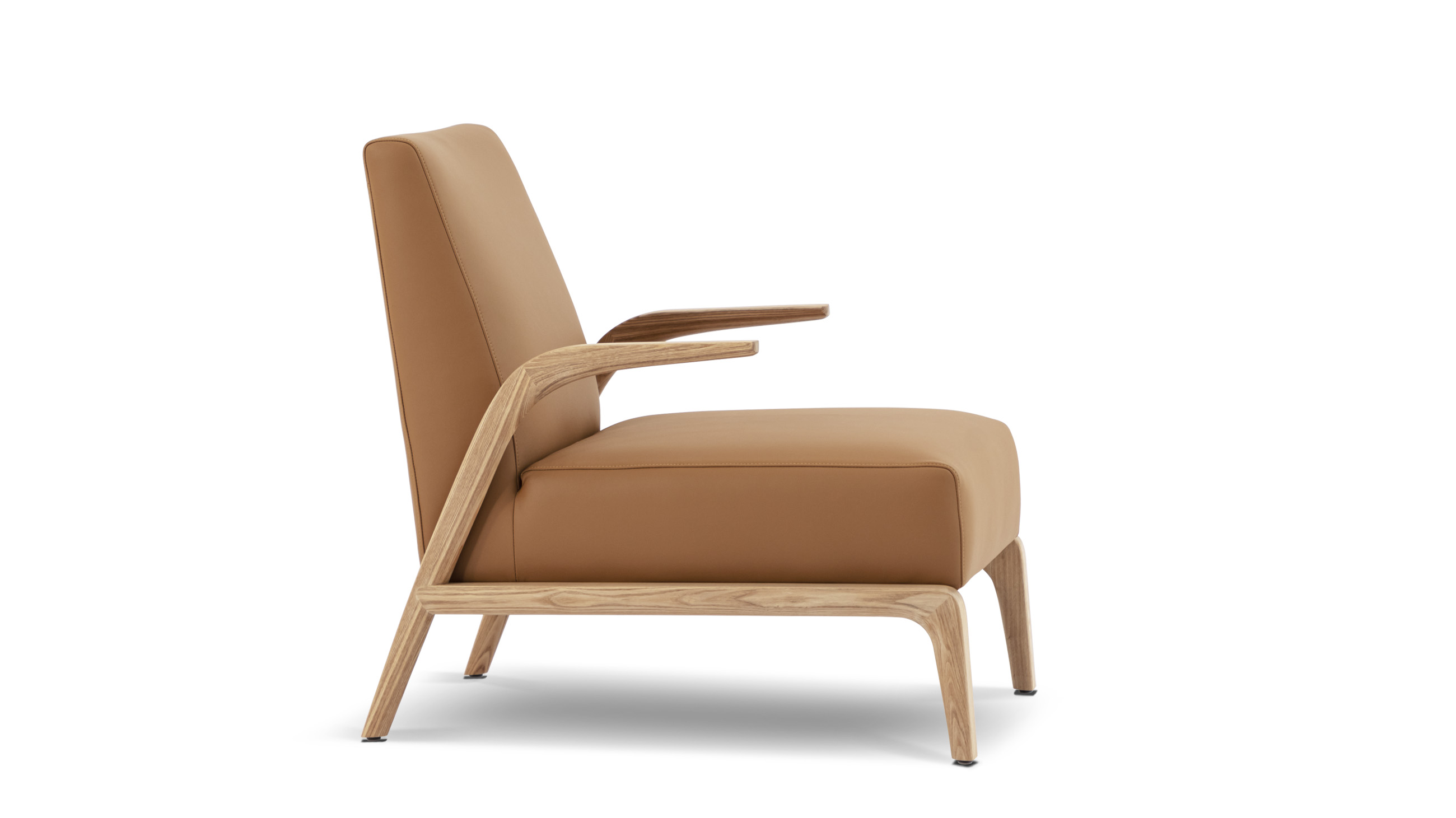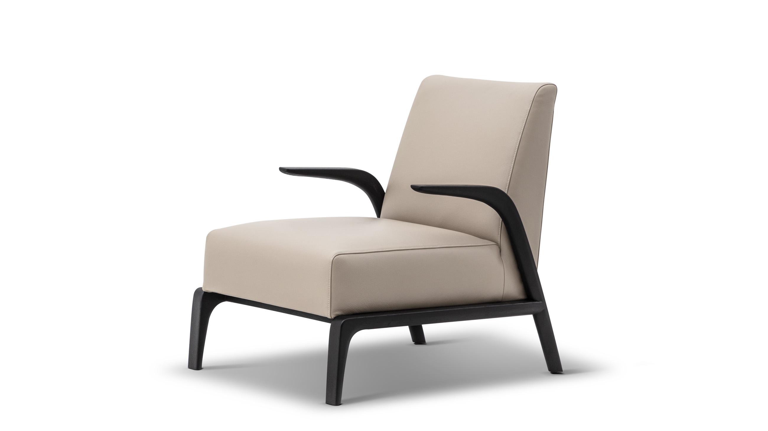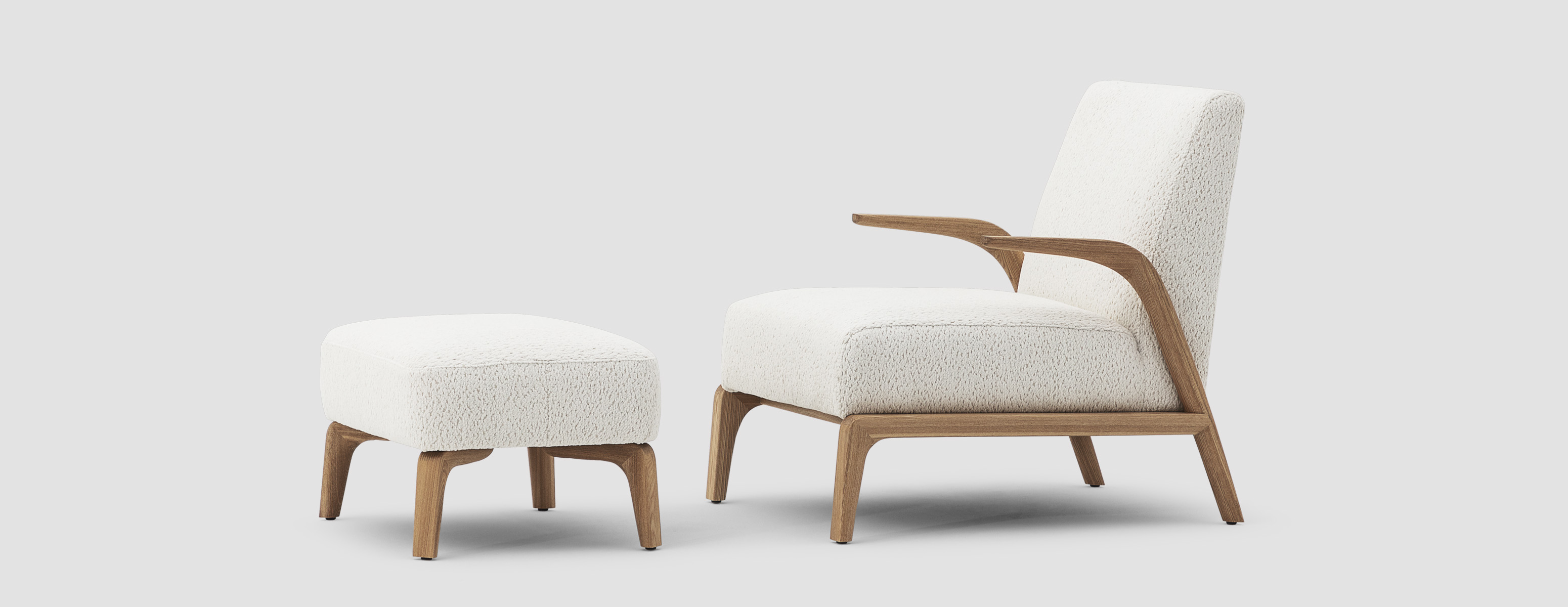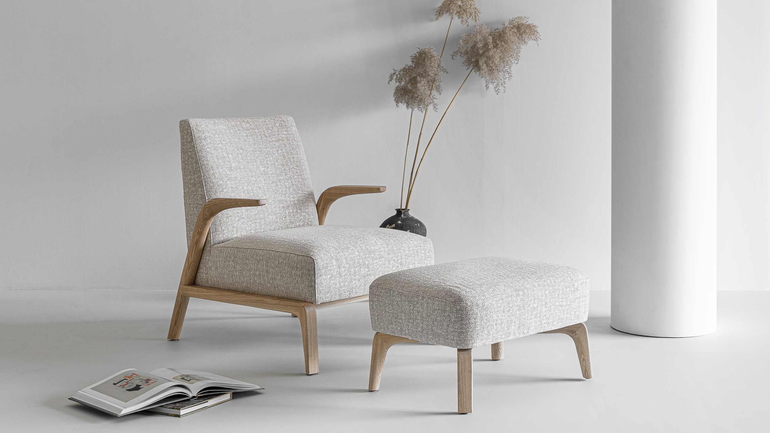 Inspired by the reminiscence of “beauty of life” and the affection for “dancing in the wind”, overhung wood armrests stretch forward like willow leaves in the wind, a sheer contrast with the chunky, comfortable sitting experience.