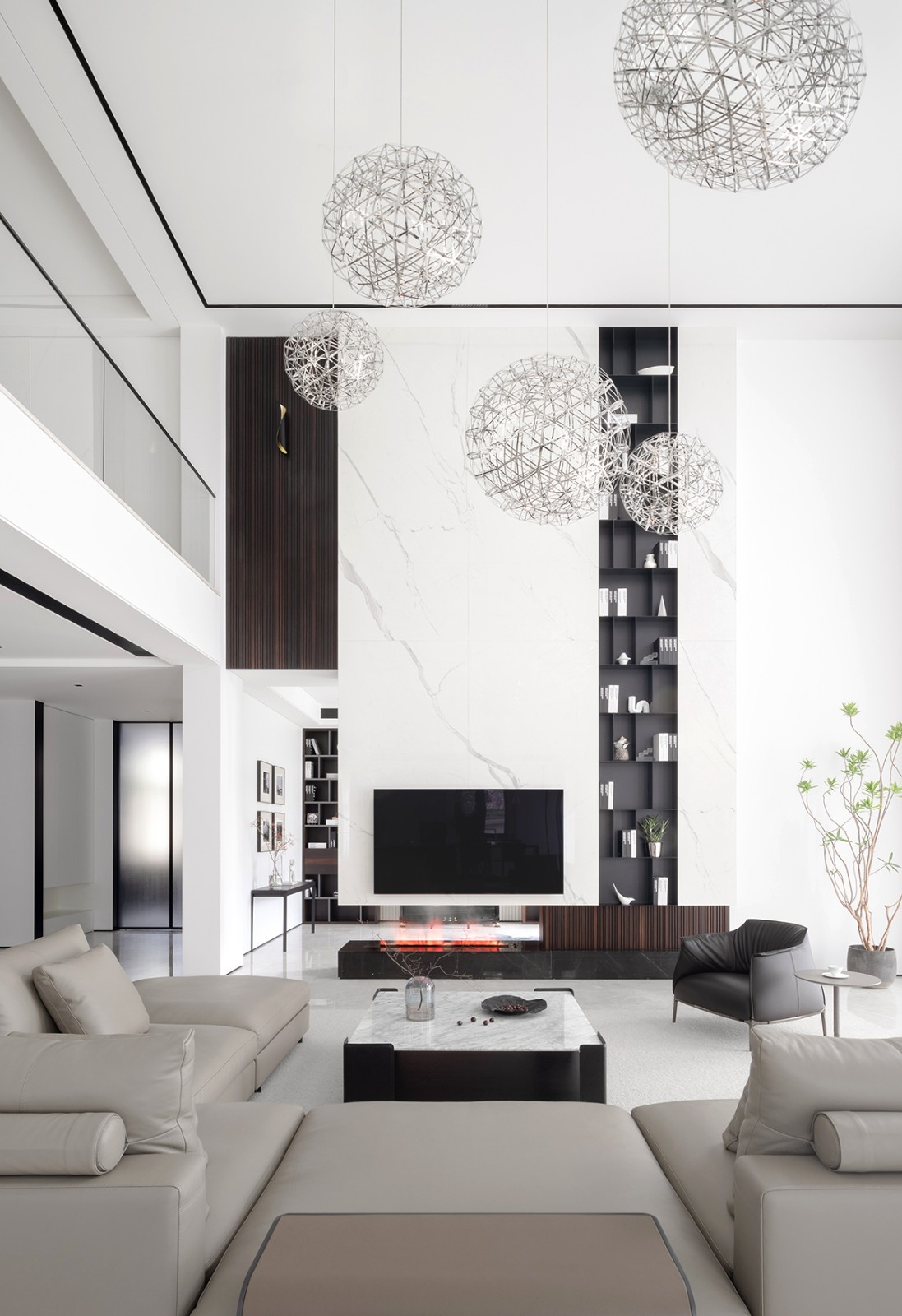 The whole building retains a linear design. The space of each floor is linearly organized and distributed. The transparent glass and the open layout of the living room blur the boundary between indoor and outdoor spaces. Each area enables the interaction between people and the space in simple lines and harmonious proportions. While maintaining a clean, sleek and rhythmic visual effect, it also shows a clear understanding of the fact that the function of the space is to provide a background for daily life. There are enough room among the living room, kitchen, dining room, guest room, washing room and other functional areas, as well as between the floors, for people to come and go freely.