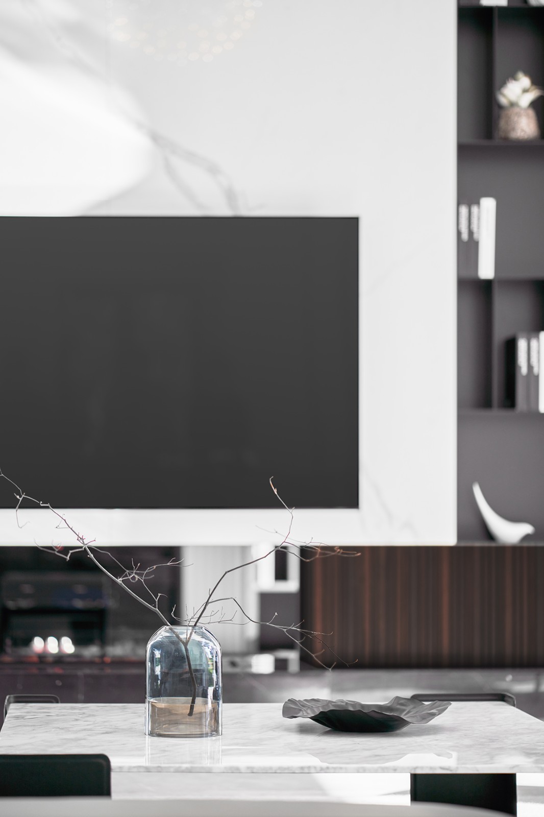 The whole building retains a linear design. The space of each floor is linearly organized and distributed. The transparent glass and the open layout of the living room blur the boundary between indoor and outdoor spaces. Each area enables the interaction between people and the space in simple lines and harmonious proportions. While maintaining a clean, sleek and rhythmic visual effect, it also shows a clear understanding of the fact that the function of the space is to provide a background for daily life. There are enough room among the living room, kitchen, dining room, guest room, washing room and other functional areas, as well as between the floors, for people to come and go freely.