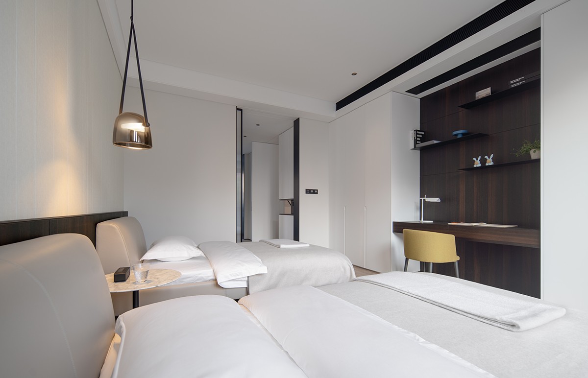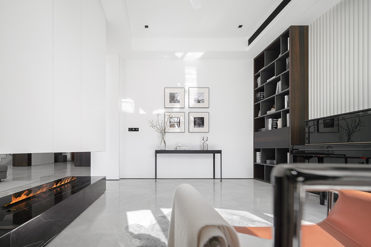 The shared space is as open as possible. Although there is a place for doors between different rooms, the presence of doors is reduced to the minimum to form a highly pleasant and open visual experience. On the first floor, there is a suspended partition device between the living room and the guest room, which connects the lounge room for quiet reading or music playing, with each room being both independent and inter-connected. When playing the piano, the whole first floor is filled with beautiful music.