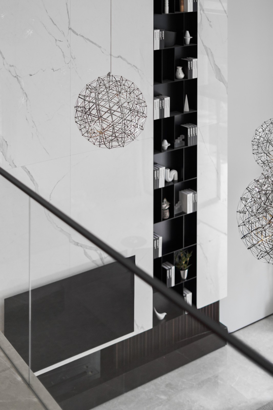 As the connecting point between different floors, the stairs add a touch of philosophical thinking into daily life. A transparent design in escalating simple lines becomes a vivid spatial expression.