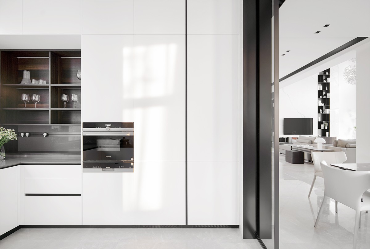 The whole building retains a linear design. The space of each floor is linearly organized and distributed. The transparent glass and the open layout of the living room blur the boundary between indoor and outdoor spaces. Each area enables the interaction between people and the space in simple lines and harmonious proportions. While maintaining a clean, sleek and rhythmic visual effect, it also shows a clear understanding of the fact that the function of the space is to provide a background for daily life. There are enough room among the living room, kitchen, dining room, guest room, washing room and other functional areas, as well as between the floors, for people to come and go freely.