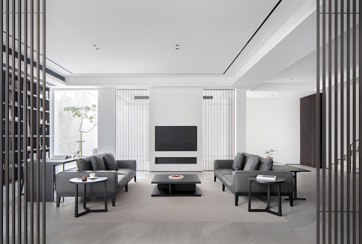 The whole building retains a linear design. The space of each floor is linearly organized and distributed. The transparent glass and the open layout of the living room blur the boundary between indoor and outdoor spaces. Each area enables the interaction between people and the space in simple lines and harmonious proportions. While maintaining a clean, sleek and rhythmic visual effect, it also shows a clear understanding of the fact that the function of the space is to provide a background for daily life. There are enough room among the living room, kitchen, dining room, guest room, washing room and other functional areas, as well as between the floors, for people to come and go freely.