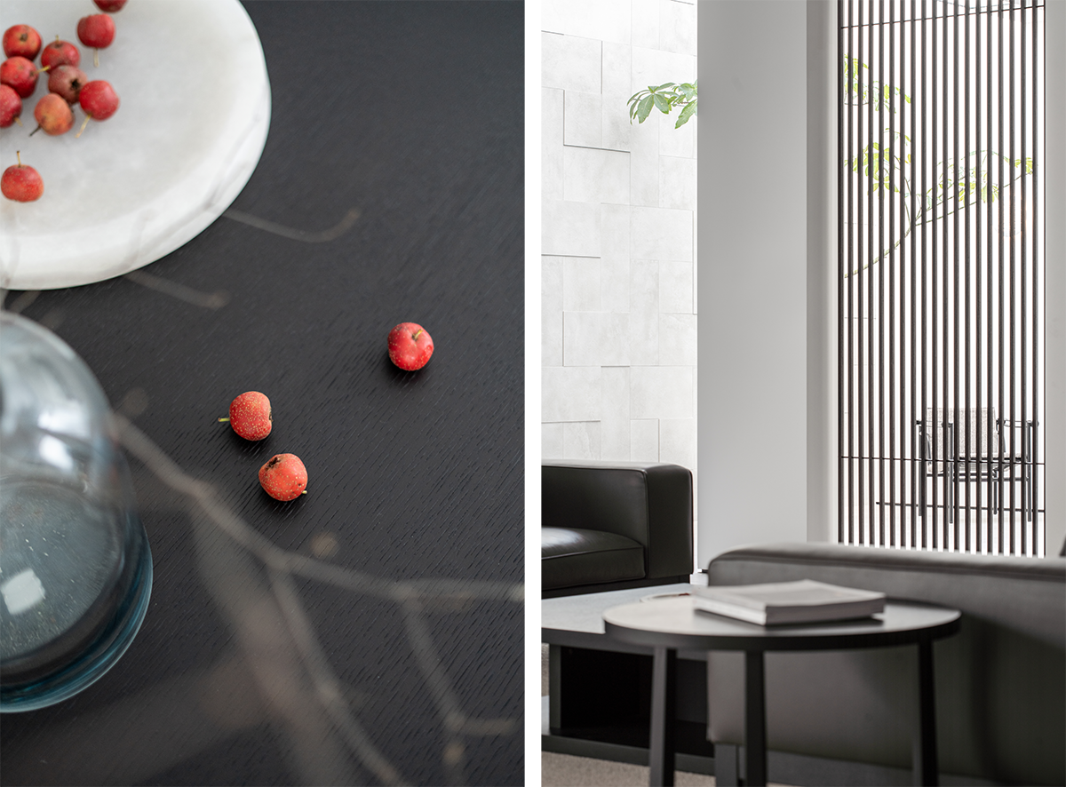 The spring breeze penetrates through the wood grills, blowing the pages of books, teasing the tree shadows, and creating a quiet and elegant style. The contrast of different materials also becomes a discussion of the relationship between objects in space, highlighting the power of the space.