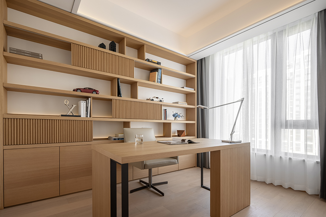 The study also adopts the wood element to maintain a soothing and elegant atmosphere and interpret a high-quality lifestyle in its minimalism.