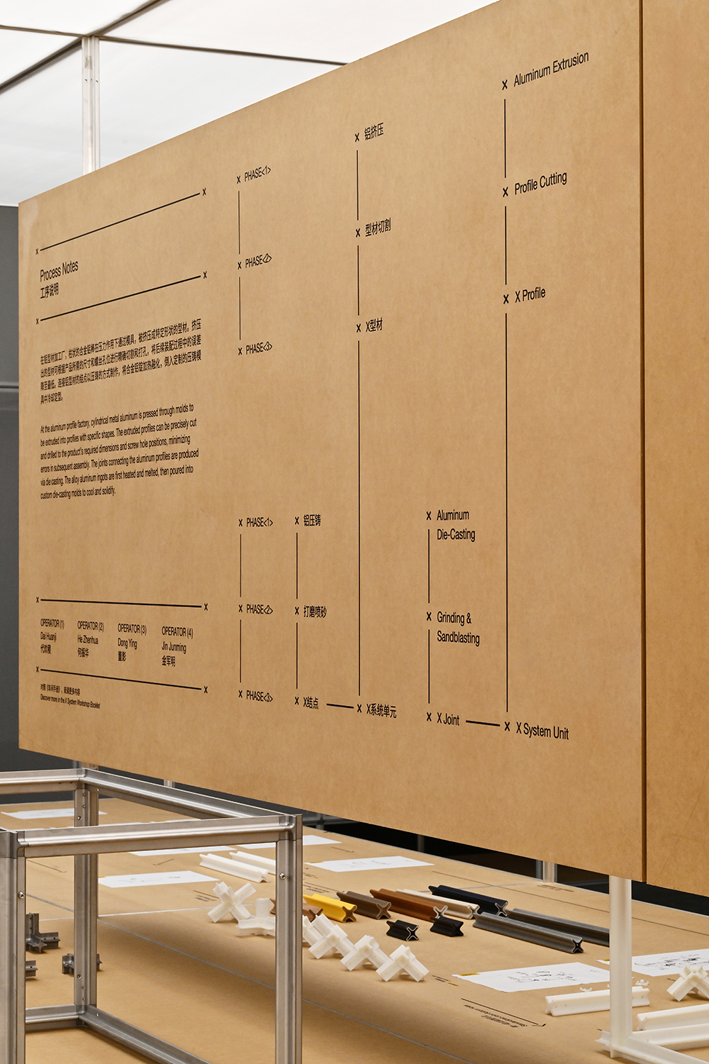 The exhibition uses the development of the X System as an example, reconstructing the series of processes a product undergoes before becoming a finished piece. The exhibition features models, sketches, raw materials, and prototypes from the X System’s R&D process, meticulously detailing each stage from development through implementation and production.