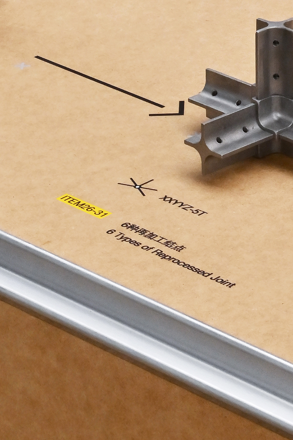 In the Foshan “Components Workshop,” aluminum alloys are processed into X-profiles and X-Joints. The X-profile uses aluminum extrusion, conferring high strength and load-bearing capacity. Profiles can be precisely cut and drilled to specification. X-Joints are made by die casting and finished with sanding and shot-blasting for unique surface texture.