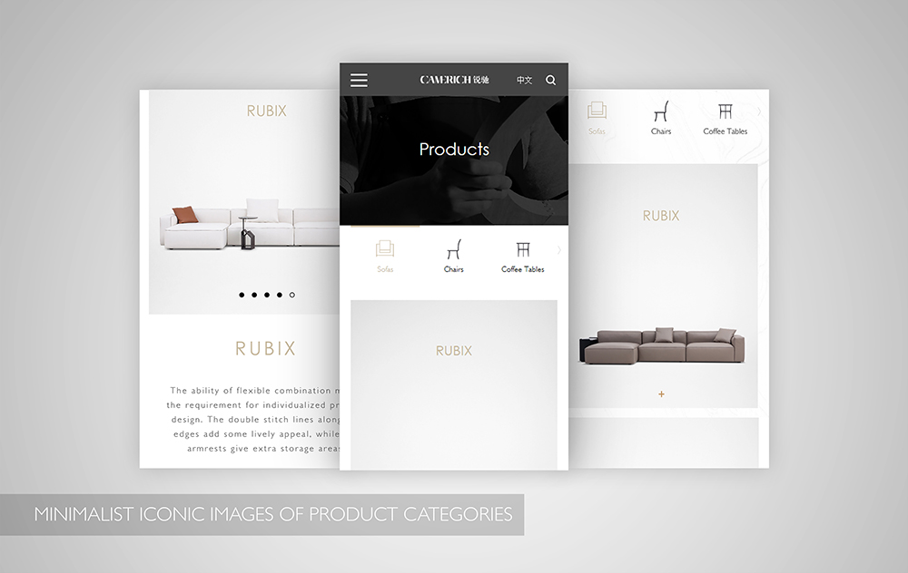 As the most important showcase of brand image, the official website directly conveys the character and connotation of the brand. Guided by CAMERICH’s “Less is More" home philosophy, the construction of the website took as long as 12 months, and gave consideration to both aesthetic and functional designs.