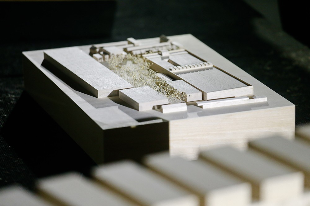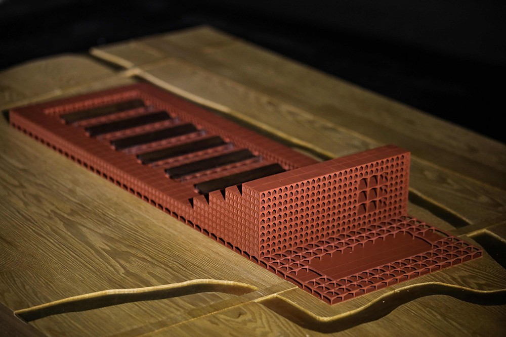 Walking along into a winding corridor, like in a canyon and cave, one can take a close look at the two architectural models of CAMERICH Beijing Headquarters and Jiaxing Industrial Park. They were created by CAMERICH in cooperation with ZAO/standardarchitecture and Neri&Hu respectively. And this is their first appearance before the public.