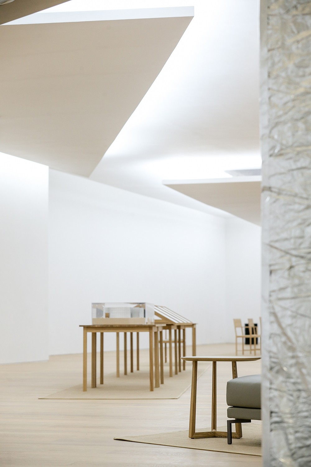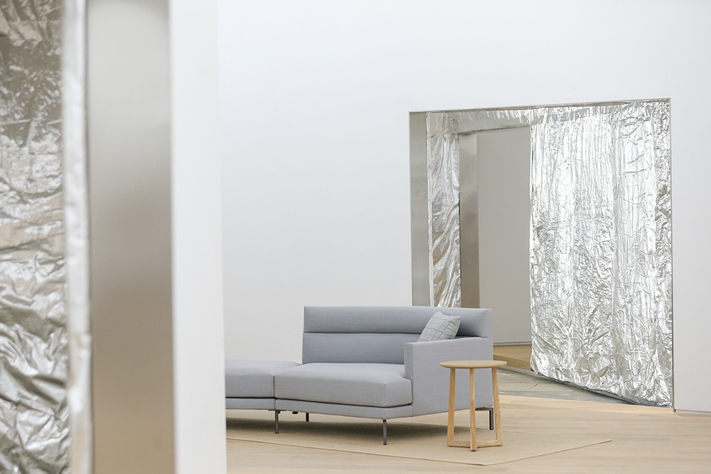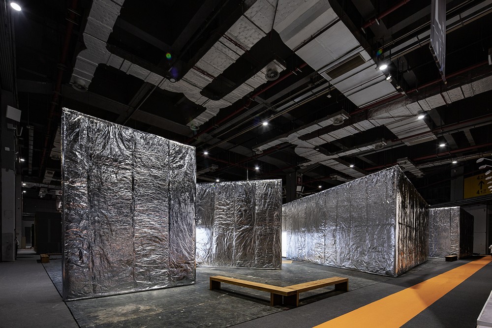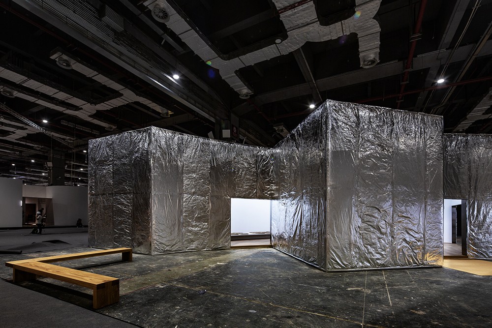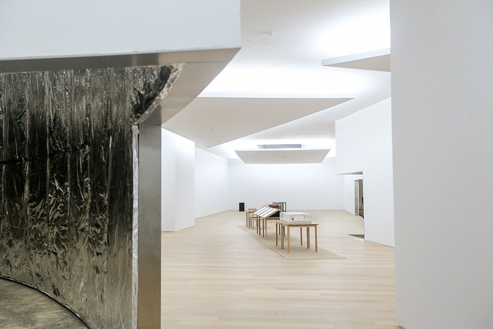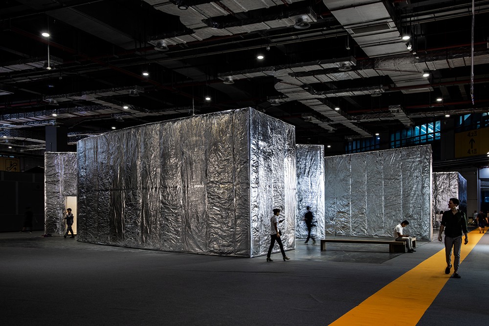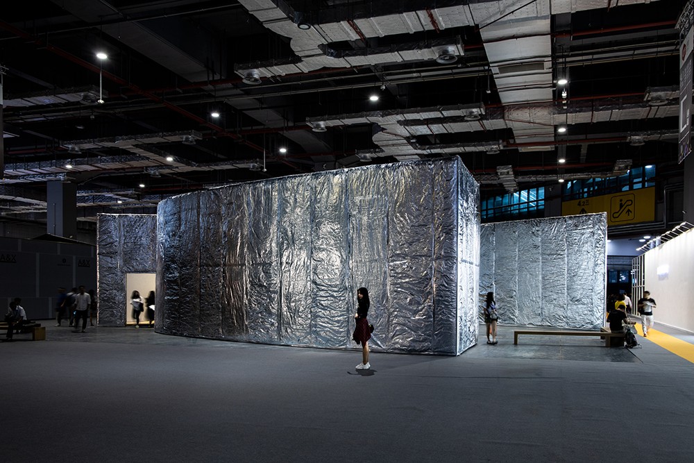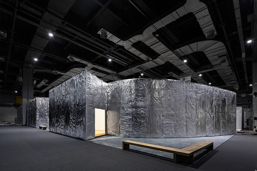 The entire pavilion appears as a perfect fusion of Siza's typical sequences of spaces and lighting. The design fragmented by geometry creates an intimate space and a vision that breaks through boundaries. In terms of the materials for the pavilion facade, Siza has experimented with new ideas. The outer skin of the pavilion is fully covered with mineral wool and aluminum foils, giving an unexpected blurry-mirroring appearance wrapped in silver soft-cushion. The inner white wall contrasts with the psychedelic reflections on the outside, conveying a sense of serenity.