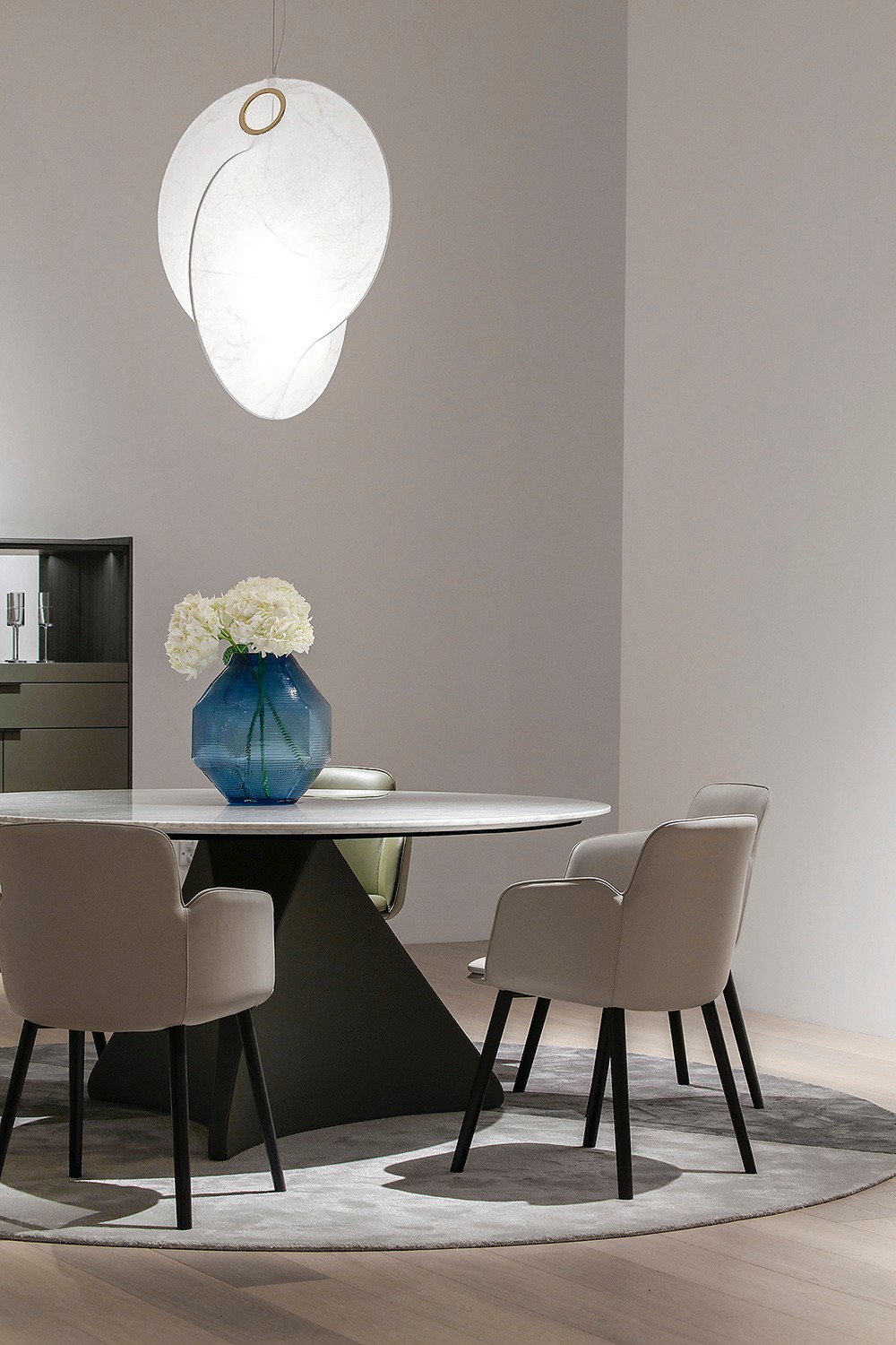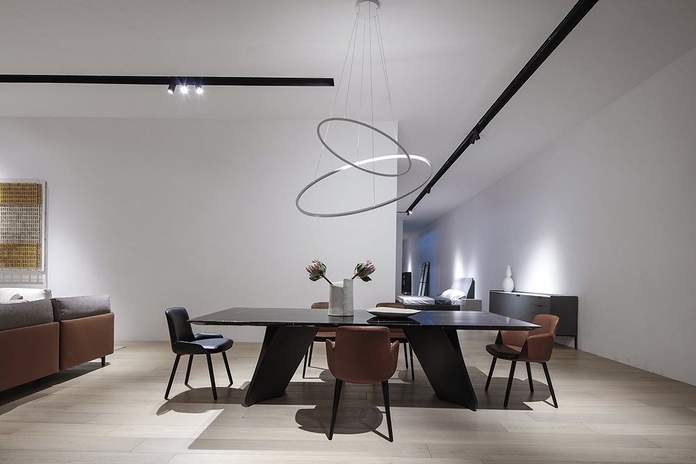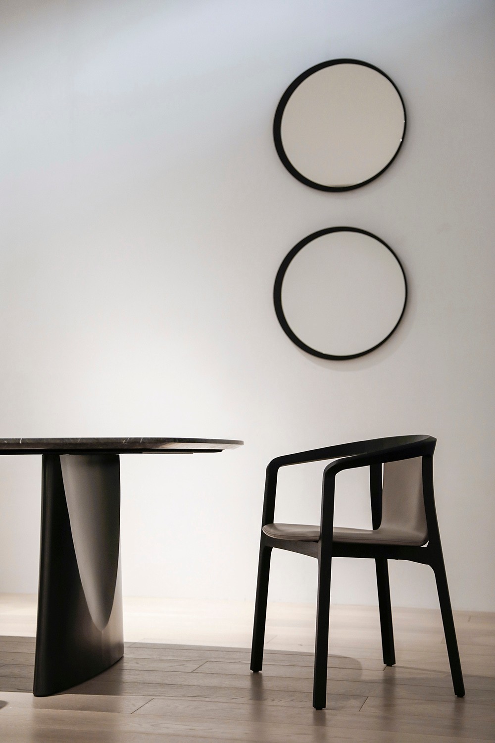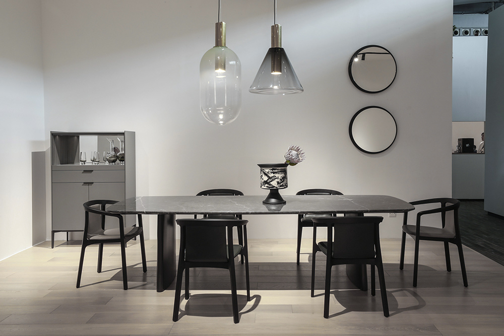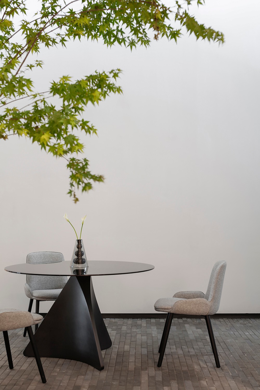 Adhering to the concept of "Design for All", FAVARETTO & PARTNERS Studio constantly upgrades its design with the changing times. The SPIN table is full of tension and gets inspired by the surfaces of organic buildings and natural canyons. The ESSENCE chair highlights the design of round-backed armchair from Ming Dynasty, and the whole piece is smooth and airy. The WING chair features an enveloping armrest and fine connection details, giving an elegant and comfortable sitting experience.
