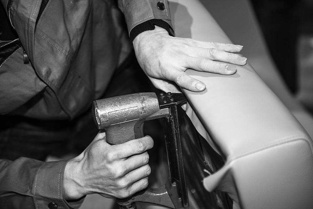 "In order to accurately express the unique theme of MATE, we tried repeatedly during the initial stage of our production. Eventually, we invented an approach for seamless tailoring with an entire piece of leather. The metal framework adds a sophisticated, modern touch, while the high-density sponge inside highlights the slim, light-weight and streamline features of the product."