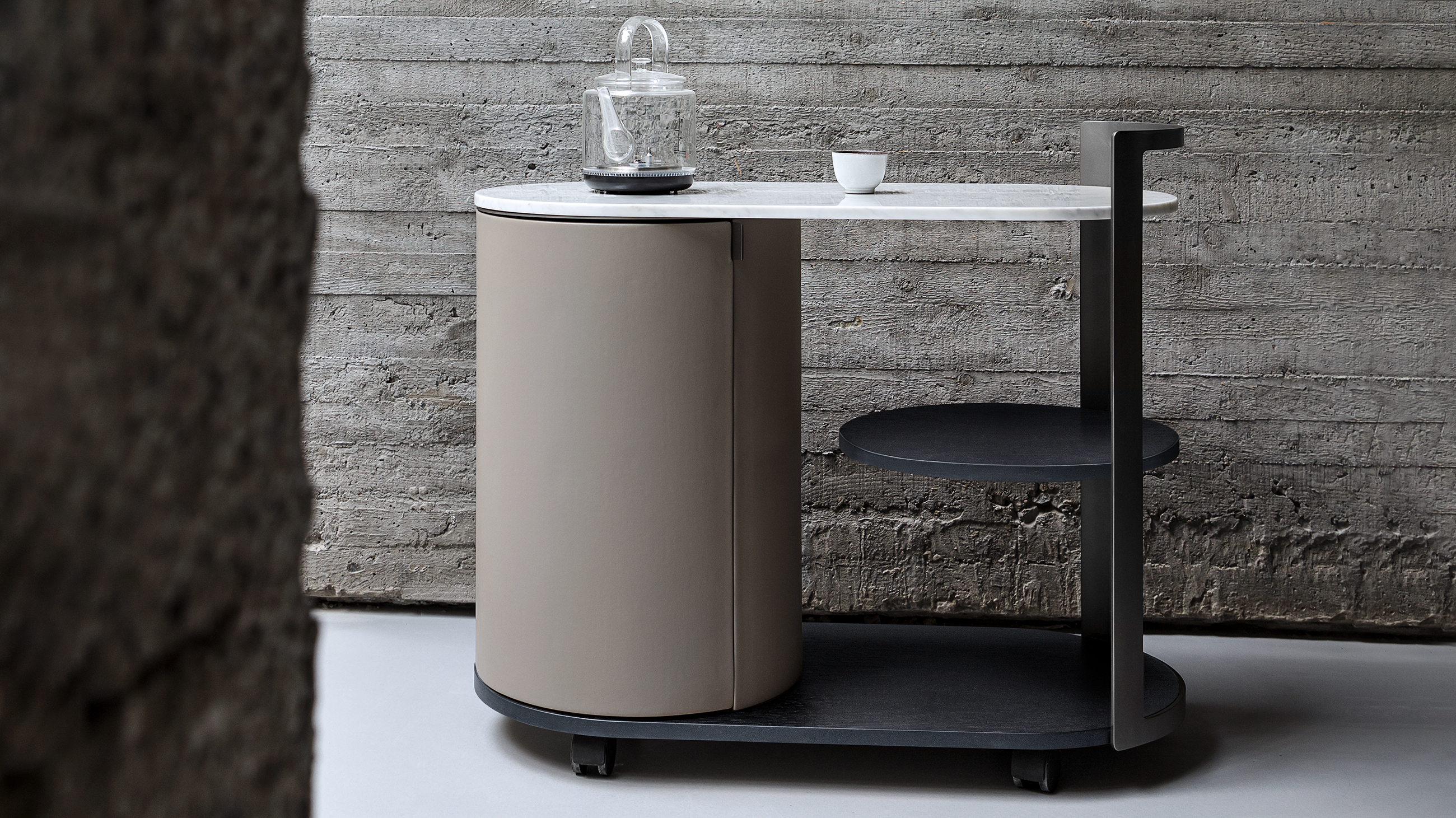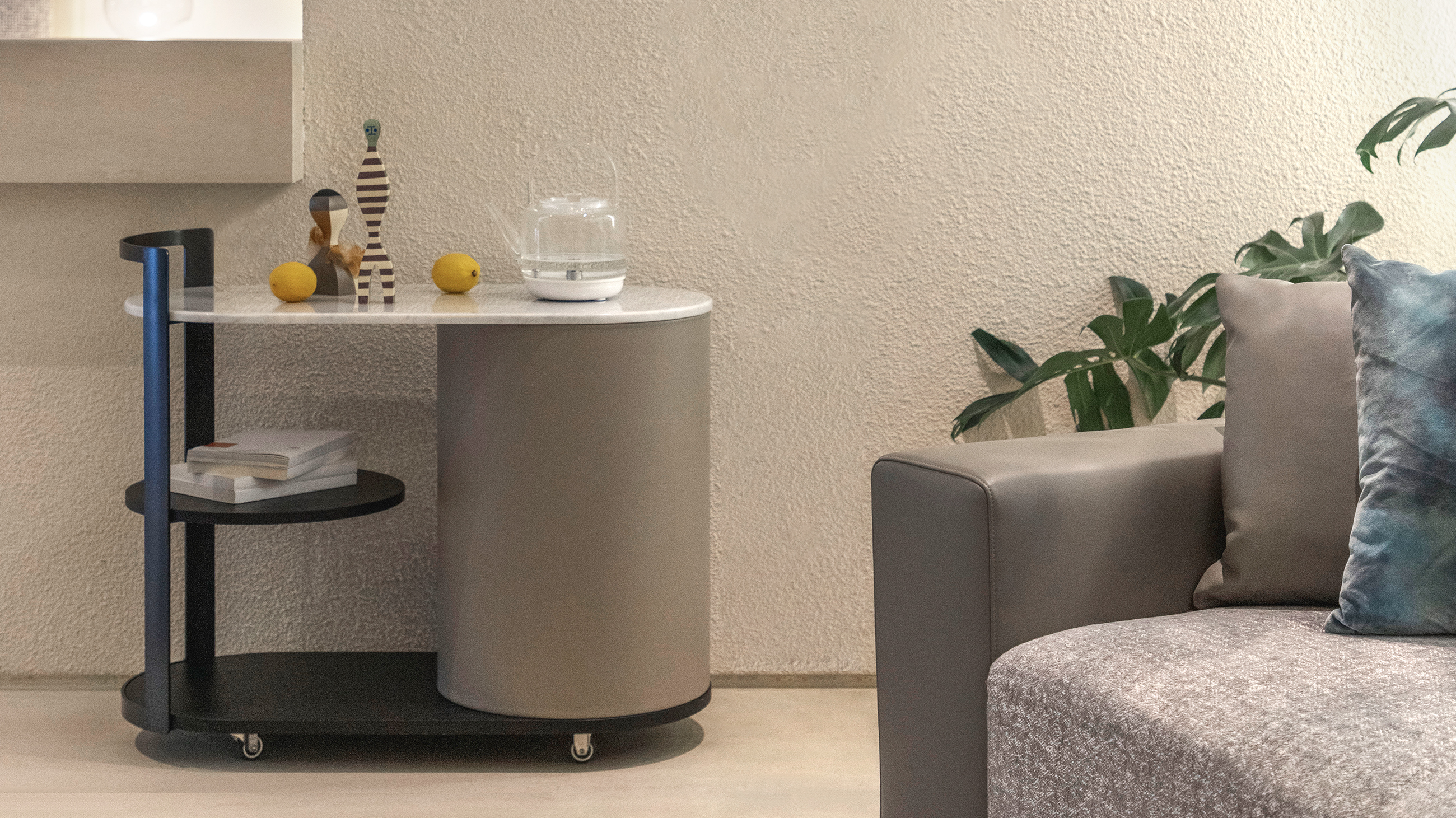 HARMON cart boasts a clean and elegant appearance with the hidden water storage and wiring design. Its automatic water supply and precise temperature control ensure safe and worry-free use. The open shelves increase storage space, while the universal wheels at the bottom enable flexible movement, allowing people to enjoy tea anywhere. Compact and agile, HARMON cart is a nice tea companion in the modern life.