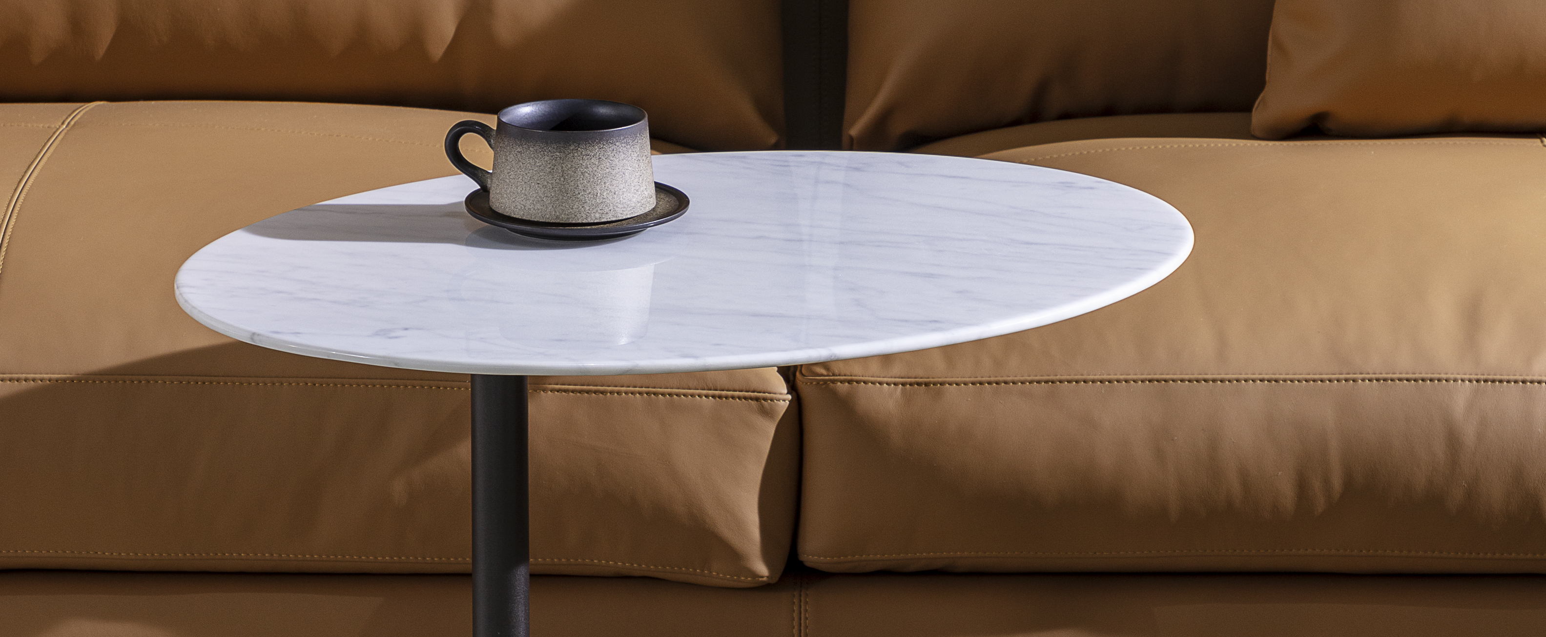 Pebble-shaped surface not only reflects a touch of modern design, but also allows the coffee table to extend above any sofa pad for convenient use.