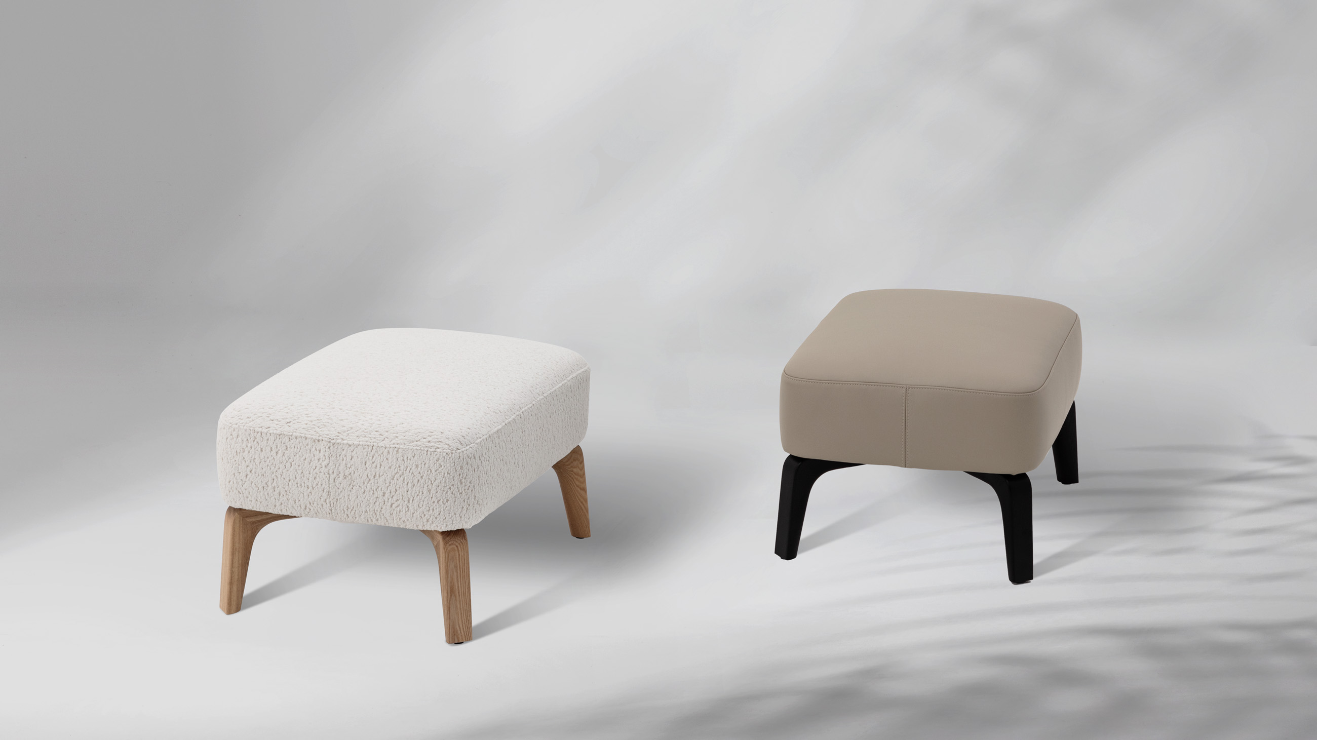 该产品集合了小沙发的舒适坐感和椅子的精巧造型,可搭配脚踏,营造出变幻别样的家居氛围。