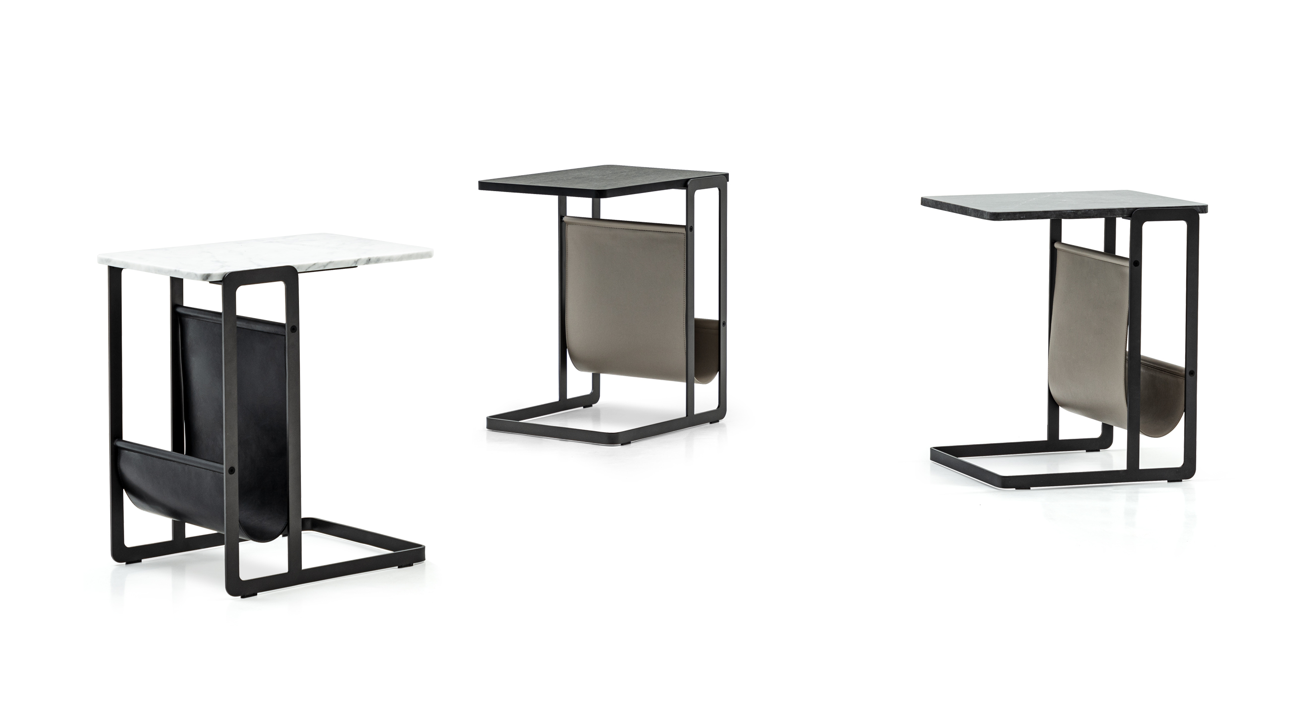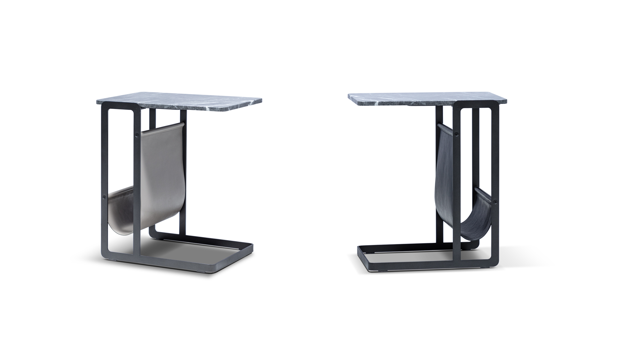 外形精巧灵动,可任意百搭,适用于不同空间。附带皮质储物兜,适合放置书册,增强实用性。